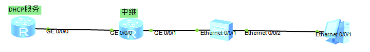 | 中继路由配置 [Huawei] interface g0/0/0 [Huawei-GigabitEthernet0/0/0] ip address 1.1.1.2 24 [Huawei-GigabitEthernet0/0/0] interface g0/0/1 [Huawei-GigabitEthernet0/0/1] ip address 192.168.3.1 24 [Huawei] dhcp enable  [Huawei] interface g0/0/1 [Huawei-GigabitEthernet0/0/1] dhcp select relay  // 在接口上应用DHCP中继功能 [Huawei-GigabitEthernet0/0/1] dhcp relay server-ip 1.1.1.1  //指向DHCP服务器的IP地址
