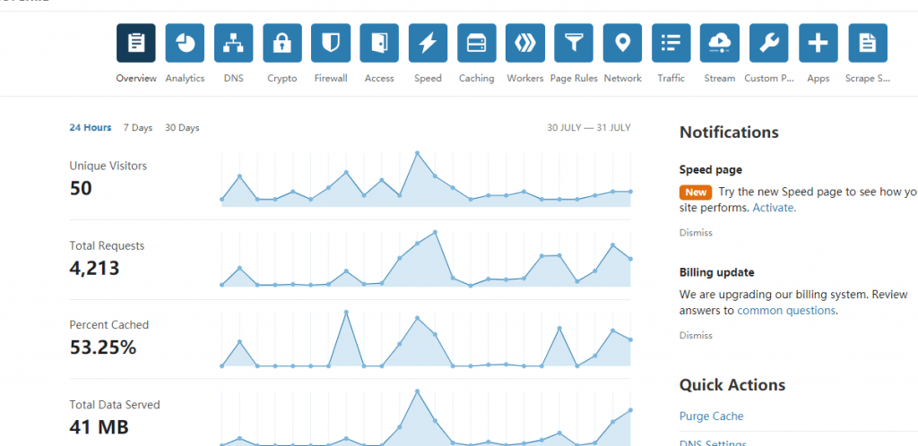 之前由于网站是搭建在国外的vps上,所以国内访问会有不小延迟,因此选择了CDN加速,为什么选择cloudflare?因为它免费,服务商是国外,貌似跟国内服务商有合作,感觉相对用国内的感觉安全(个人感觉).可能是心理上的吧!不管怎么说免费这点还是可以的。