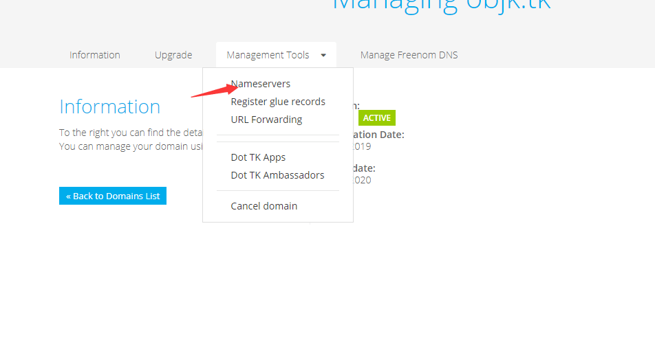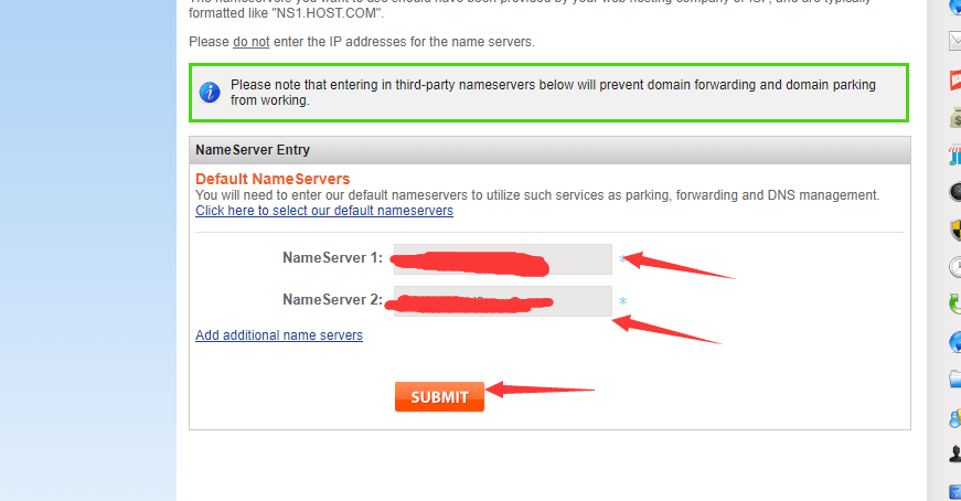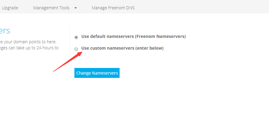 copy下两个DNS服务器地址,然后进入你域名注册商哪里更改默认的DNS服务器.下面这是freenom的: