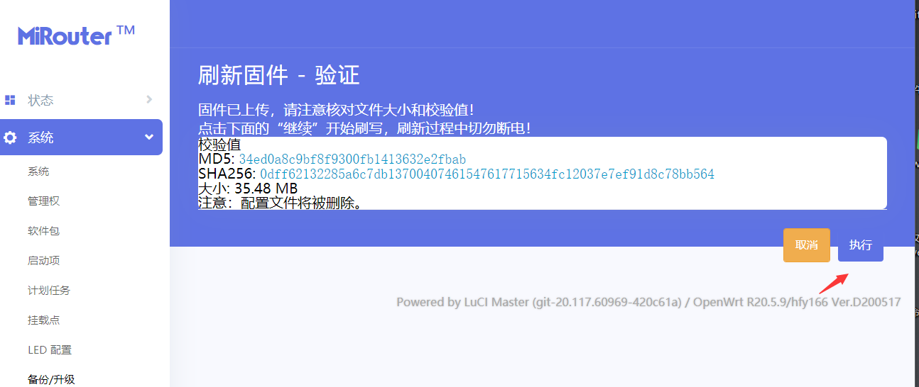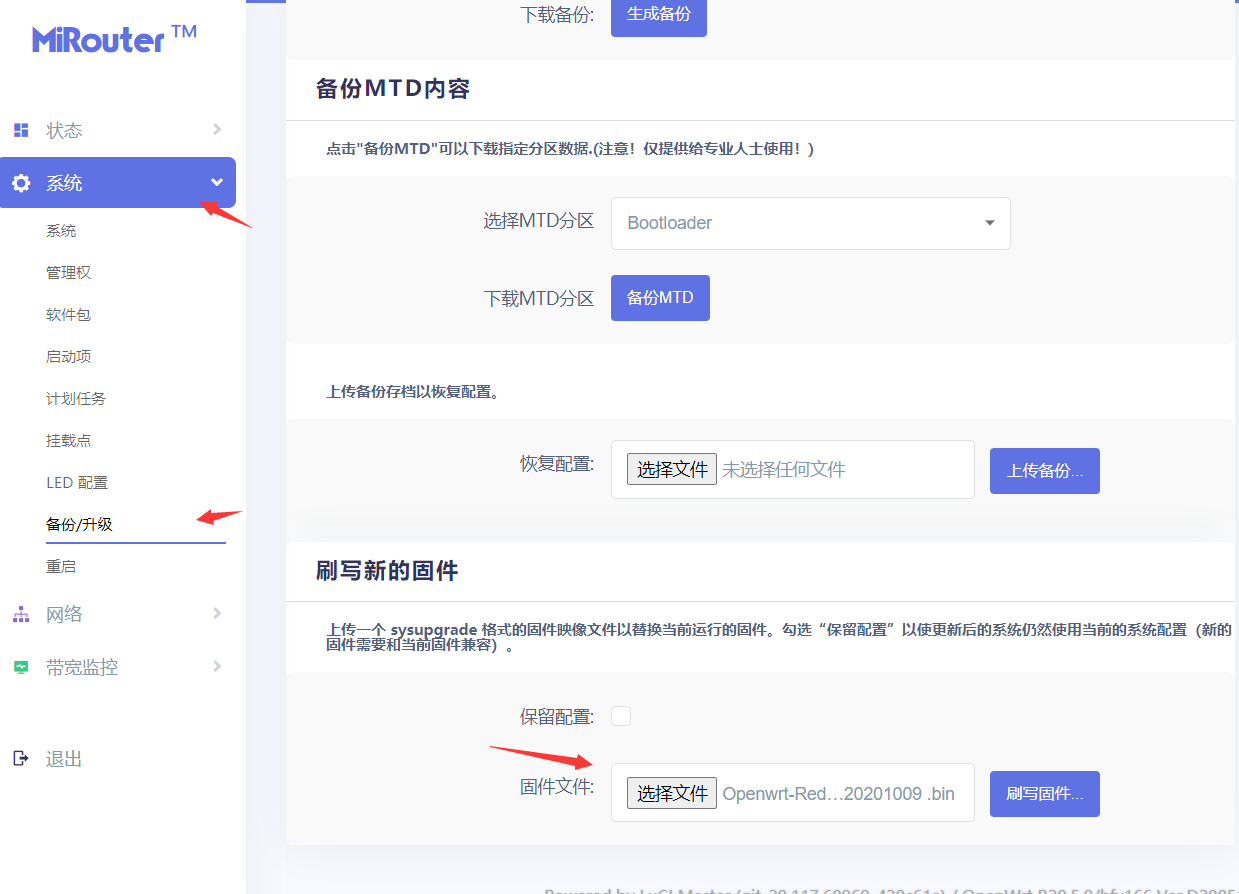 重点来了,接下来就是刷入固件,这里用的是恩山大佬提供的【1009多功能版OpenWrt】。