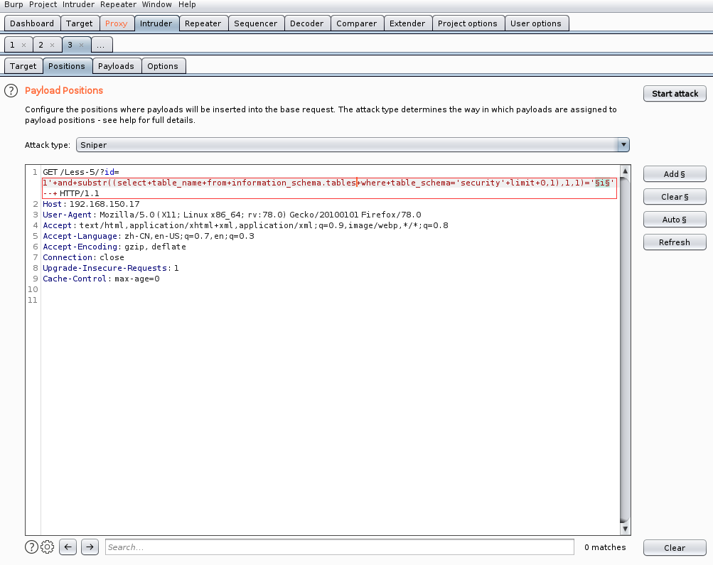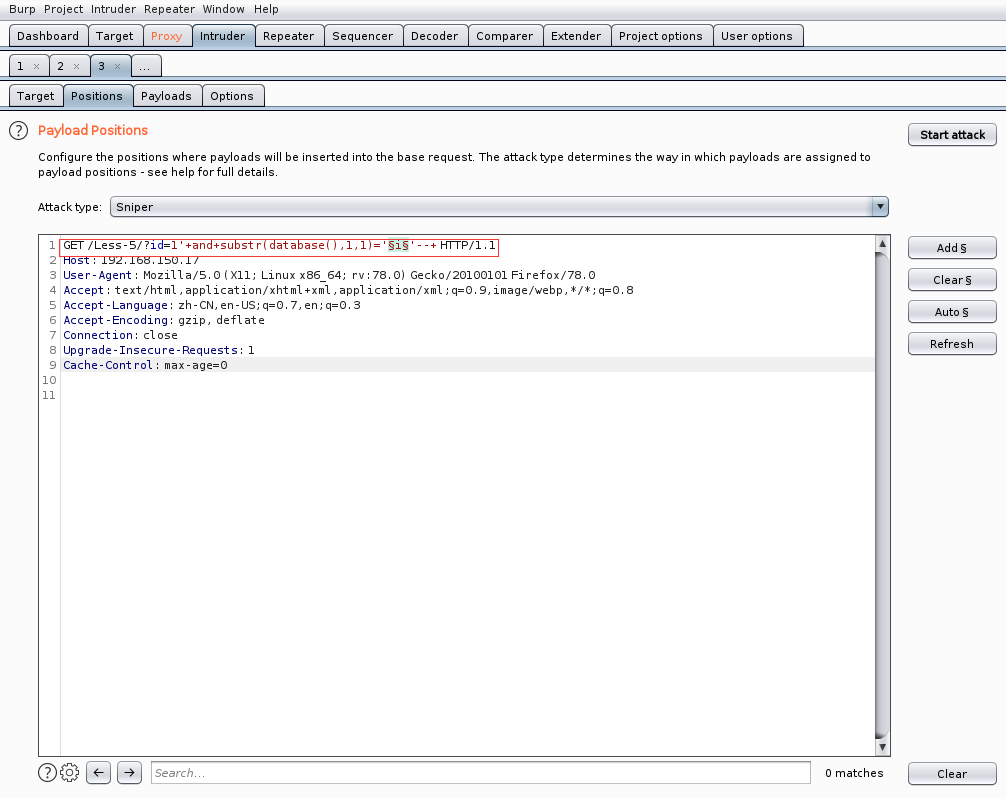 substr的用法跟limit的有区别,需要注意。limit是从0开始排序,而这里是从1开始排序。可以使用burp的爆破功能爆破其中的’i’值。