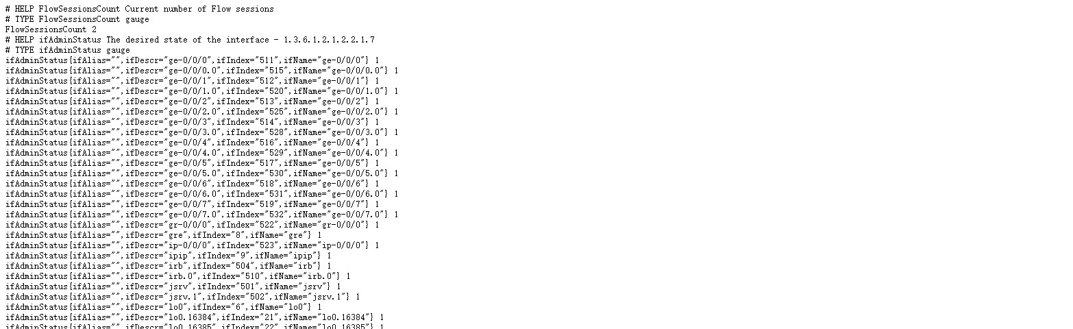 if_mib: + auth: + community: public walk: - 1.3.6.1.2.1.2 - 1.3.6.1.2.1.31.1.1 + - 1.3.6.1.4.1.2636.3.39.1.12 + - 1.3.6.1.4.1.2636.3.1 get: - 1.3.6.1.2.1.1.3.0 metrics: + - name: jnxAvailableSession + oid: 1.3.6.1.4.1.2636.3.39.1.12.1.1.1.7 + type: gauge + help: Juniper_SRX_MonitoringMaxFlowSession + - name: FlowSessionsCount + oid: 1.3.6.1.4.1.2636.3.39.1.12.1.1.1.6.0 + type: gauge + help: Current number of Flow sessions + - name: jnxJsSPUMonitoringMemoryUsage + oid: 1.3.6.1.4.1.2636.3.39.1.12.1.1.1.5.0 + type: gauge + help: Current memory usage of SPU(CPU) in percentage. + - name: jnxJsSPUMonitoringCPUUsage + oid: 1.3.6.1.4.1.2636.3.1.13.1.8.9.1.0.0 + type: gauge + help: Current Services Processing Unit's -SPU (CPU) Utilization in percentage. + - name: jnxOperatingTemp + oid: 1.3.6.1.4.1.2636.3.1.13.1.7.9.1.0 + type: gauge + help: The temperature in Celsius (degrees C) of this subject. Zero if unavailable or inapplicable + - name: jnxOperatingMemoryRE1 + oid: 1.3.6.1.4.1.2636.3.1.13.1.15.9.2.0.0 + type: gauge + help: The installed memory size in Megabytes of this subject. Zero if unavailable or inapplicable. + - name: jnxOperatingMemoryRE0 + oid: 1.3.6.1.4.1.2636.3.1.13.1.15.9.1.0.0 + type: gauge + help: The installed memory size in Megabytes of this subject. Zero if unavailable or inapplicable. - name: sysUpTime oid: 1.3.6.1.2.1.1.3 type: gauge help: The time (in hundredths of a second) since the network management portion of the system was last re-initialized. - 1.3.6.1.2.1.1.3